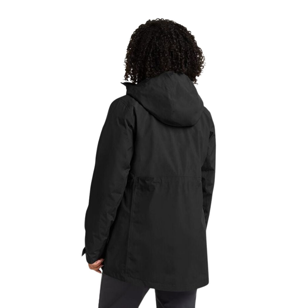 The ICECAPE 3IN1 DOWN JACKET blends premium materials and technology with versatility for any kind of weather. With a longer, feminine silhouette, this 3IN1 jacket has a waterproof and breathable outer jacket made with TEXAPORE ECOSPHERE PRO fabric, waterproof zips for all-weather protection, and a 2-way center zip for fit and mobility adjustment on the go. The super cozy inner jacket features ALLIED RDS 700 FP down to keep you warm even in the coldest winter environments.